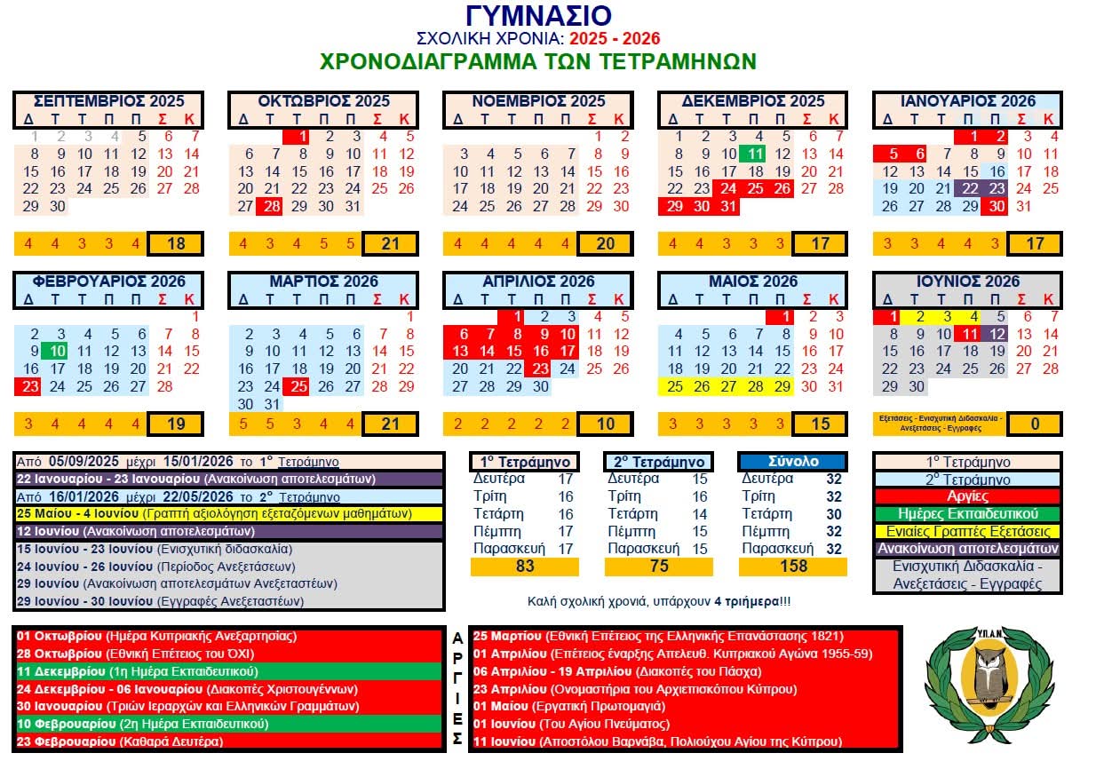 Χρονοδιάγραμμα - Σχολικές Αργίες για το Σχολικό Έτος 2025-2026